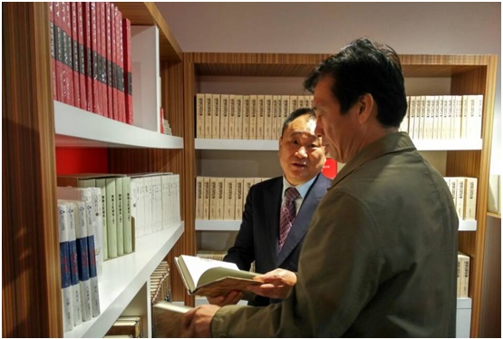 龔曙光董事長向蔡振紅部長介紹集團(tuán)近年來出版的重點圖書和精品圖書。