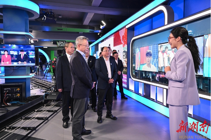 沈曉明來(lái)到長(zhǎng)沙學(xué)院、湖南大眾傳媒職業(yè)技術(shù)學(xué)院、湖南藝術(shù)職業(yè)學(xué)院,實(shí)地察看了全媒體中心實(shí)驗(yàn)室、XR演播區(qū)、湖南廣播電視臺(tái)節(jié)目生產(chǎn)基地、全媒體實(shí)訓(xùn)室等,詳細(xì)了解學(xué)院發(fā)展、專(zhuān)業(yè)布局、校企合作、以新技術(shù)助推人才培養(yǎng)與文化產(chǎn)業(yè)深度融合等情況,指出要深化產(chǎn)教融合,推動(dòng)校企合作向資源集約型發(fā)展,鼓勵(lì)更多行業(yè)專(zhuān)業(yè)技術(shù)人才進(jìn)校授課,打造特色鮮明的應(yīng)用型高校。