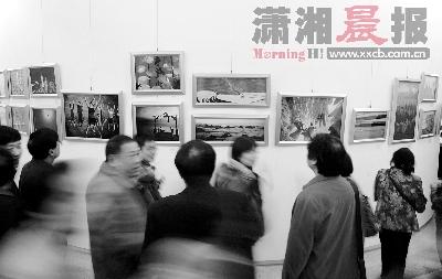 昨日,“愛在中南傳媒”書畫攝影邀請展在湖南美術(shù)館舉行,不少市民到現(xiàn)場觀看。