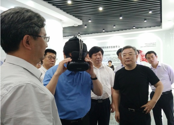 白玉剛一行首先來到教育社,參觀了貝殼網(wǎng)。貝殼網(wǎng)是教育社數(shù)字轉(zhuǎn)型的代表產(chǎn)品,匯聚海量數(shù)字教育資源,致力于打造“個性學(xué)能分層+定制學(xué)案匹配+走班分層授課+階段效果強(qiáng)化”的“線上+線下”融合性教學(xué)模式。白玉剛表示,數(shù)字教育是產(chǎn)業(yè)轉(zhuǎn)型重要方向,是實現(xiàn)教育公平的重要途徑,貝殼網(wǎng)的探索走在了前面。參觀期間,白玉剛部長還饒有興趣地體驗了VR教學(xué)設(shè)備,并與貝殼網(wǎng)和國防科大聯(lián)合開發(fā)的教育機(jī)器人“小安”進(jìn)行了互動。
