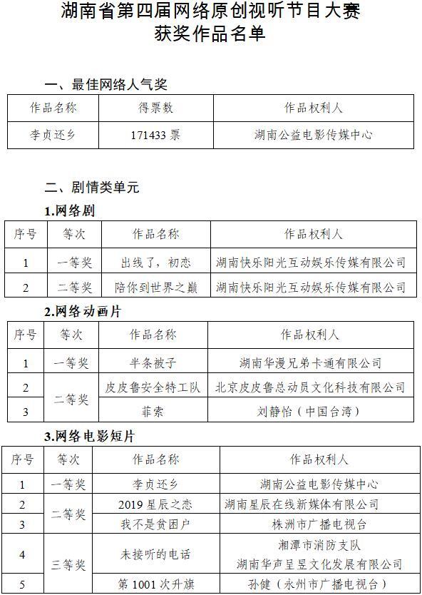 湖南出版投資控股集團(tuán)積極參與到本次大賽中,共報(bào)送74件參賽作品,最終9件作品獲獎(jiǎng):湖南紅網(wǎng)新媒體集團(tuán)的作品《長(zhǎng)沙交警接力護(hù)航 為小生命爭(zhēng)取了寶貴救治時(shí)間》榮獲新聞短視頻一等獎(jiǎng),瀟湘晨報(bào)社的作品《美好時(shí)代之童話長(zhǎng)沙》榮獲網(wǎng)絡(luò)短視頻(非新聞?lì)?二等獎(jiǎng),湖南紅網(wǎng)新媒體集團(tuán)的作品《火遍中國(guó)的這張A4紙,背后有更多的感動(dòng)》榮獲網(wǎng)絡(luò)短視頻(非新聞?lì)?二等獎(jiǎng),湖南紅網(wǎng)新媒體集團(tuán)的作品《湖南最后的慢火車》榮獲新聞短視頻二等獎(jiǎng),湖南出版投資控股集團(tuán)有限公司的作品《追夢(mèng)人》榮獲網(wǎng)絡(luò)短視頻(非新聞?lì)?三等獎(jiǎng),湖南岳麓書(shū)社有限責(zé)任公司的作品《走向世界叢書(shū)》榮獲網(wǎng)絡(luò)短視頻(非新聞?lì)?三等獎(jiǎng),中南出版?zhèn)髅郊瘓F(tuán)股份有限公司湖南教育出版社分公司的作品《筑就夢(mèng)想之梯》榮獲網(wǎng)絡(luò)短視頻(非新聞?lì)?三等獎(jiǎng),湖南紅網(wǎng)新媒體集團(tuán)的作品《年夜飯》和《湘·疆20年》榮獲網(wǎng)絡(luò)紀(jì)錄片三等獎(jiǎng)。