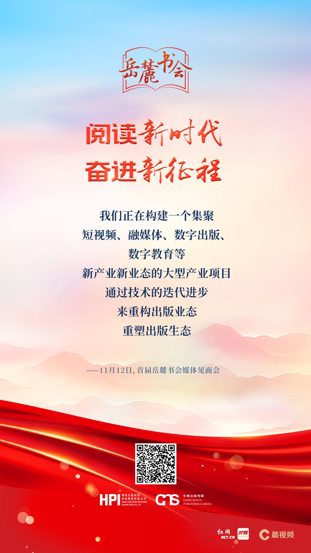 所以,在這個(gè)時(shí)候舉辦首屆“岳麓書(shū)會(huì)”,既是湖南出版集團(tuán)學(xué)習(xí)宣傳貫徹黨的二十大精神的實(shí)際行動(dòng),是推動(dòng)集團(tuán)第三次黨代會(huì)工作部署落實(shí)落地的“開(kāi)篇之作”,也是做好新時(shí)代出版工作的必然要求。我們希望,以“岳麓書(shū)會(huì)”為起點(diǎn),一方面,通過(guò)舉辦形式多樣的讀書(shū)活動(dòng),營(yíng)造良好的閱讀氛圍,讓閱讀成為一種社會(huì)風(fēng)尚,在三湘大地迅速掀起學(xué)習(xí)貫徹黨的二十大精神的熱潮,推動(dòng)黨的二十大精神傳遍千家萬(wàn)戶、入腦入心入行;另一方面,通過(guò)提供高質(zhì)量的出版產(chǎn)品,為廣大讀者提供豐富優(yōu)質(zhì)的精神文化食糧,更好地服務(wù)讀者、服務(wù)人民,讓人們的精神更加富有、發(fā)展更加全面。這就是我們舉辦“岳麓書(shū)會(huì)”兩個(gè)最大的初衷和最直接的目的。記者:首屆“岳麓書(shū)會(huì)”媒體見(jiàn)面會(huì)的背景板上,“閱讀新時(shí)代,奮進(jìn)新征程”10個(gè)大字很是醒目,作為知名出版企業(yè)的掌門(mén)人,您如何理解“閱讀新時(shí)代”里的這個(gè)“新”字?彭玻:對(duì)于“閱讀新時(shí)代”,我們應(yīng)該有兩個(gè)層面的理解: